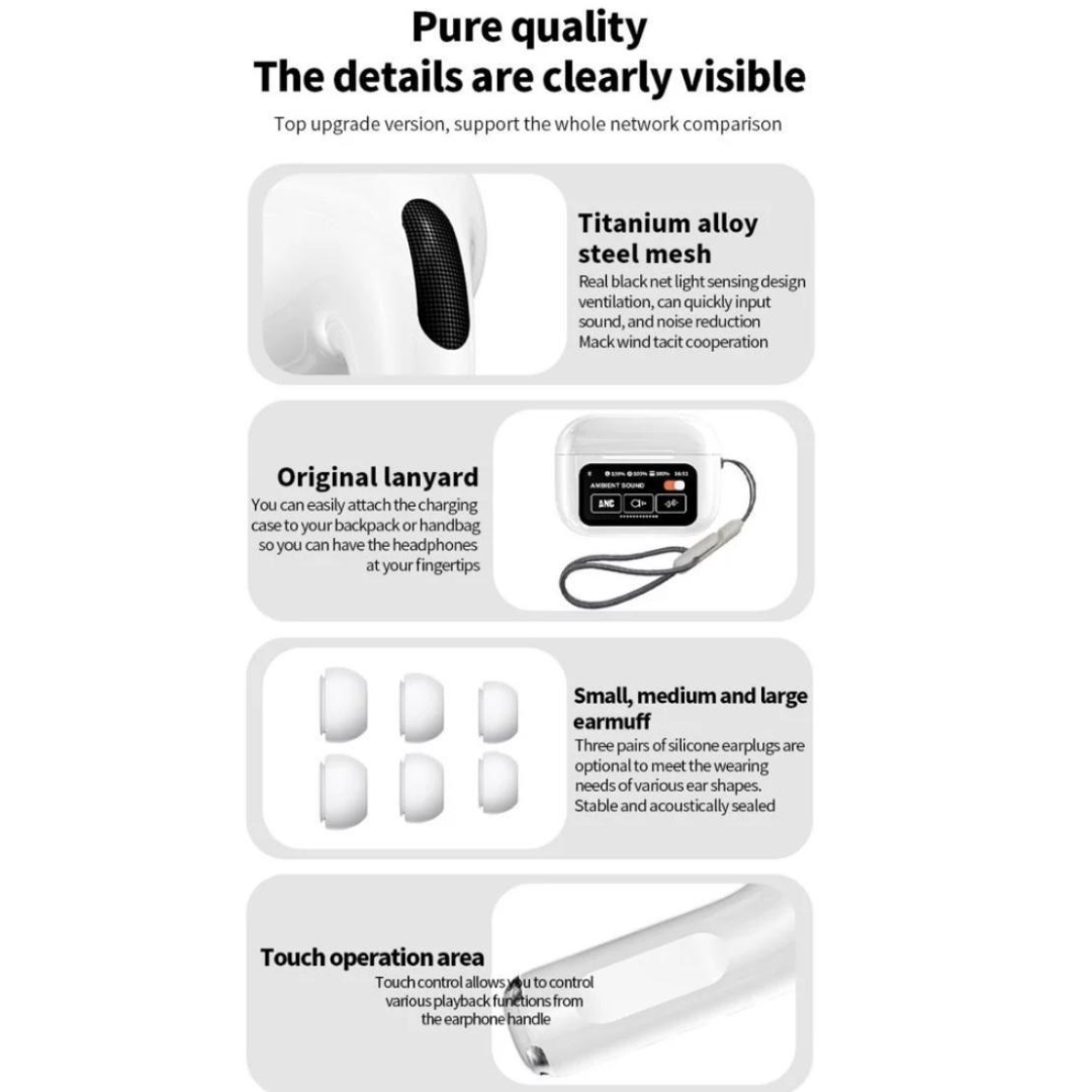 A9 Pro Earphones Wireless Bluetooth 5.4 Headset ANC Noise Reduction Mic Call Earbuds LED Touch Screen Control Headphone